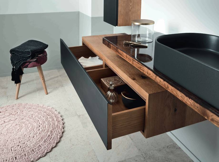 La famiglia Gap si compone di basi cassettone, basi sotto lavello e pensili proposte in varie dimensioni e finiture con scocca in materico o in legno massello con possibilità di impreziosirle con top in Laminam o frontali in metallo. Caratteristica sistema di apertura con anta o frontale cassetto a 45°.