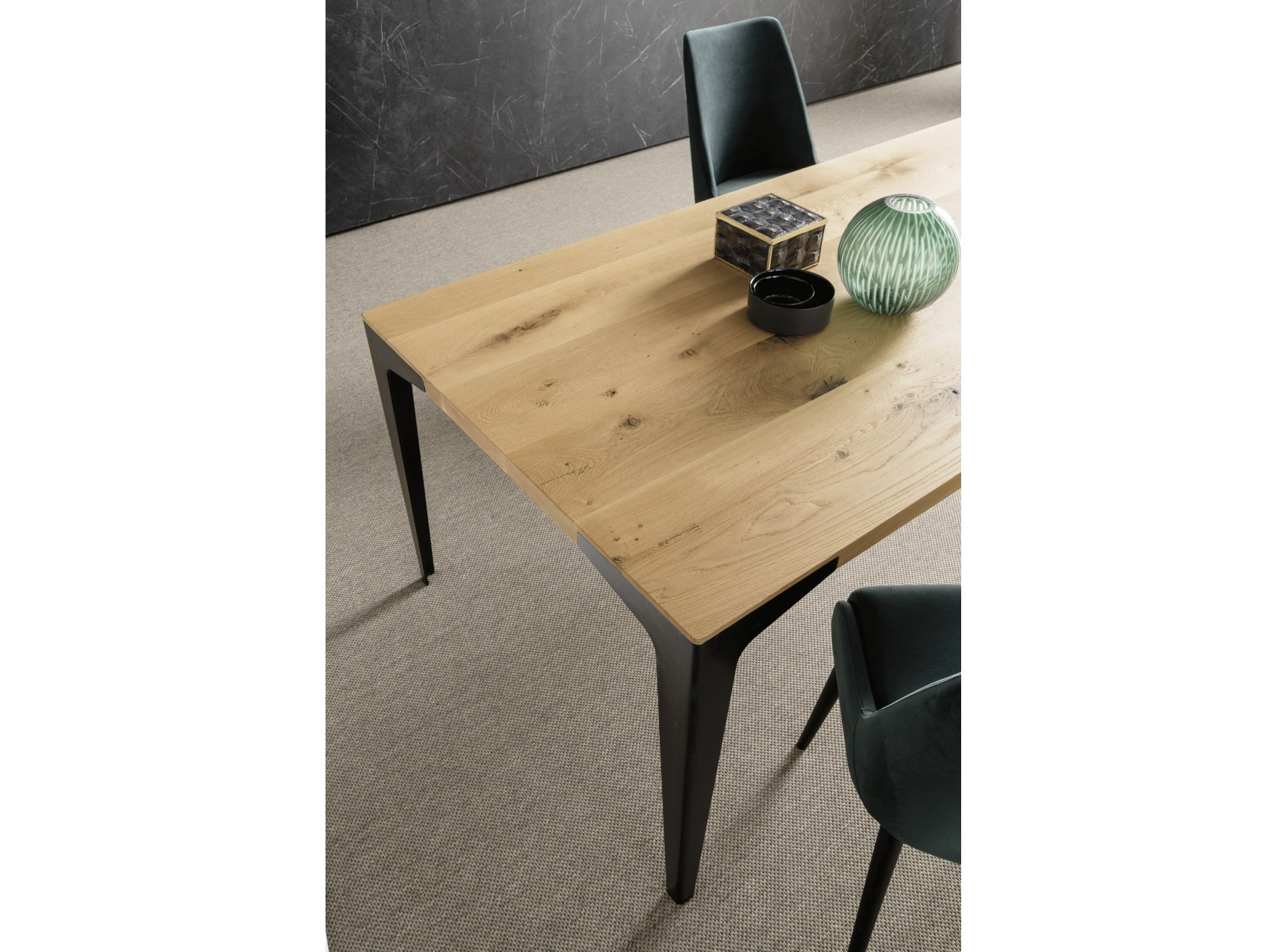 Il tavolo Fly si ispira al volo e alla leggerezza. È composto da soli piani in rovere massello europeo o noce ed è stato studiato per far risaltare l’accostamento tra la solidità del legno e la leggerezza stilistica delle gambe con una conformazione a coda di rondine. Collanti vinilici all’acqua, vernici acriliche bicomponenti.