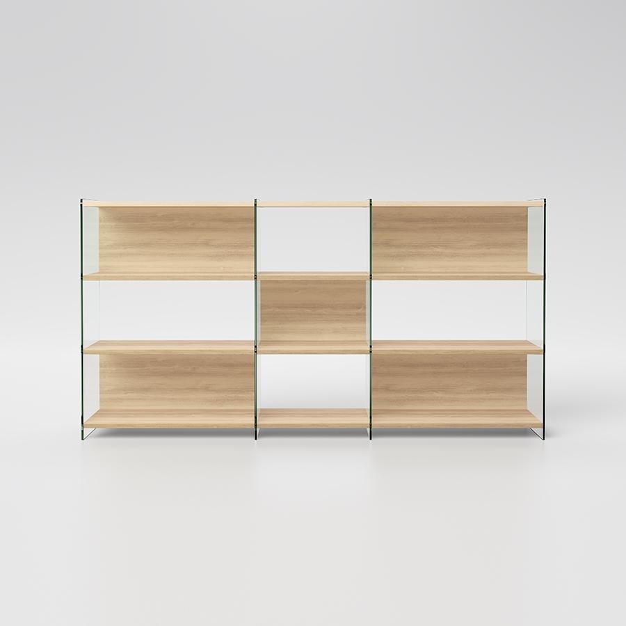 BYBLOS è una libreria componibile elegante e di prestigio, realizzata con fianchi portanti in vetro temperato trasparente o fumé da 10 mm e ripiani in laminato da 25mm. I ripiani sono disponibili in varie dimensioni: cm 43, 58, 88. E' disponibile inoltre, un modulo da 158 cm. La libreria è molto versatile e si presta ad essere utilizzata in composizioni lineari oppure al centro della stanza come divisorio. La composizione in foto è composta da: 0/70A-F2 coppia di fianchi portanti in vetro trasparente temperato, cm 1x36x202h, completa di accessori per il montaggio in alluminio. 0/70A-F1 fianco portante in vetro trasparente temperato, cm 1x36x202h, completo di accessori per il montaggio in alluminio. 0/70A-R58 set ripiani da cm 58 in laminato, con due fondi, cm 58x36x2,5h. Fondo in laminato. 0/70A-R88.SC2 set ripiani da cm 88 in laminato, cm 88x36x2,5h. - 2 vani chiusi con ante scorrevoli