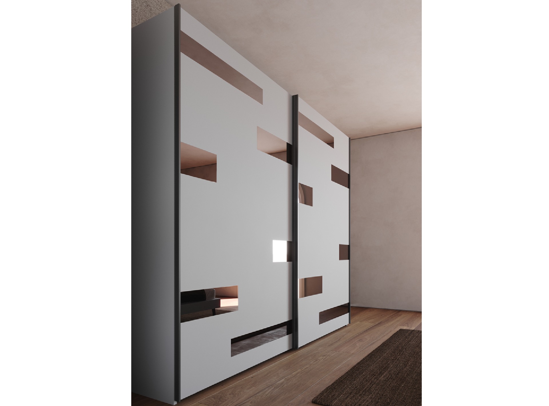 L'armadio diventa protagonista della camera da letto, con dettagli geometrici e lucidi si distingue per il suo design innovativo e dinamico. Un elemento unico nell'arraedamento della tua camera da letto.