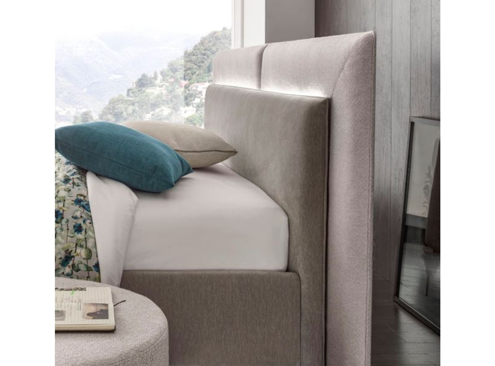 Ispirato alla celebre Marilyn, Monroe è un letto con doppia testata eclettico. Anche il rivestimento è quindi doppio: si possono creare abbinamenti personalizzati, tono su tono o a contrasto. La particolarità del modello Monroe è che tra la testata alta e quella bassa è possibile inserire un led luminoso che ne mette ulteriormente in risalto il design e il contrasto cromatico.