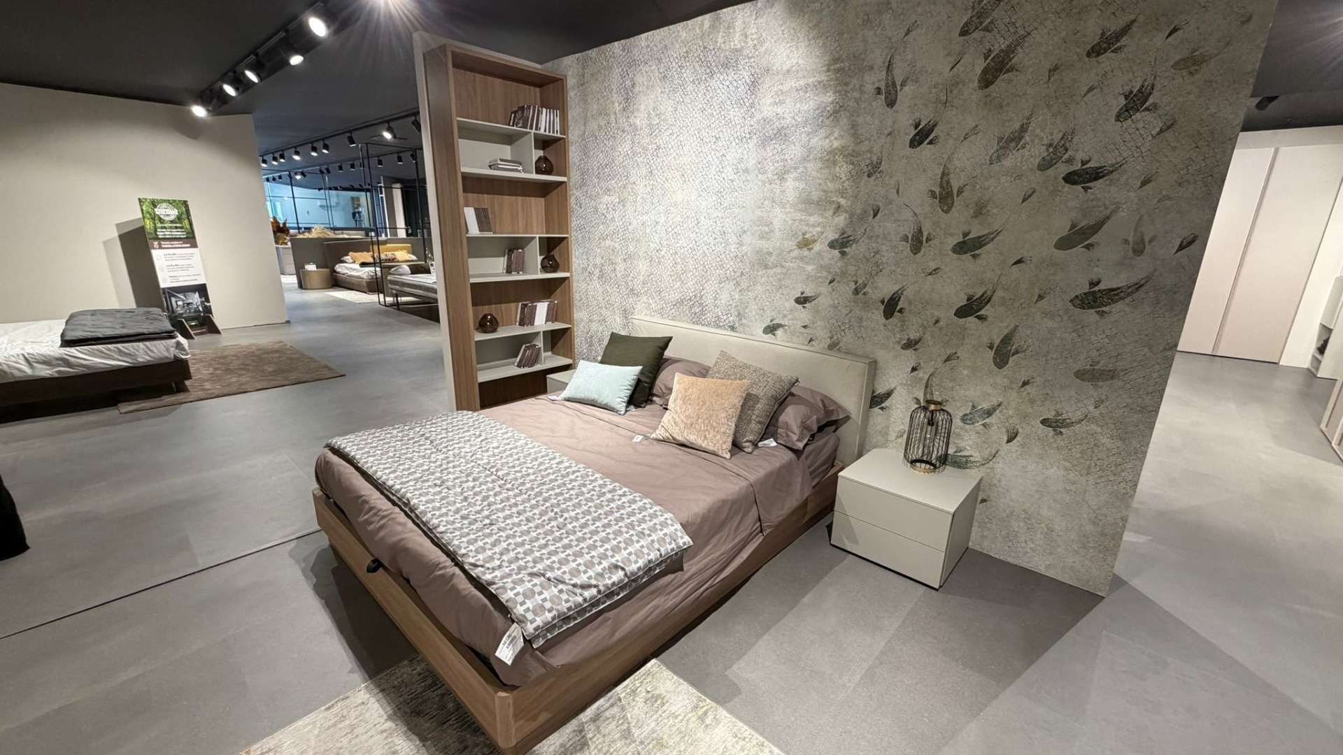 Camera Cinquanta3 Canapa e NAturale. Letto, comodini e Libreria