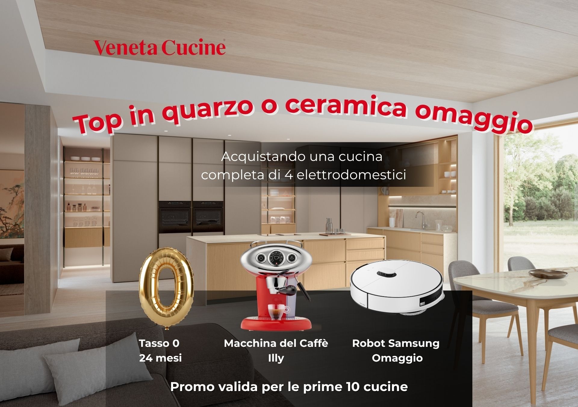 Con una spesa minima di 6.000€ per una cucina Veneta Cucine con almeno 4 elettrodomestici inclusi, puoi accedere a un pacchetto esclusivo che unisce qualità, tecnologia e convenienza.